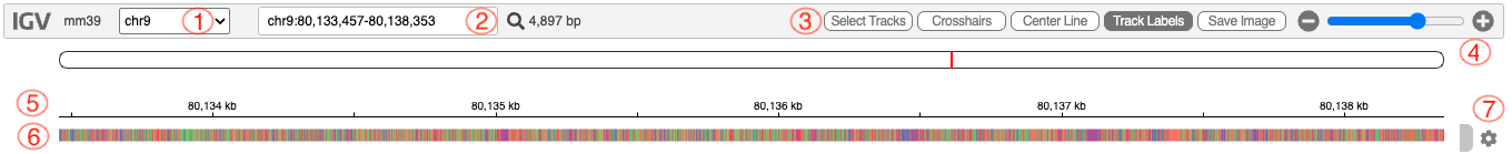 - 5. Ruler, shows genomic position in kb (kilobases)