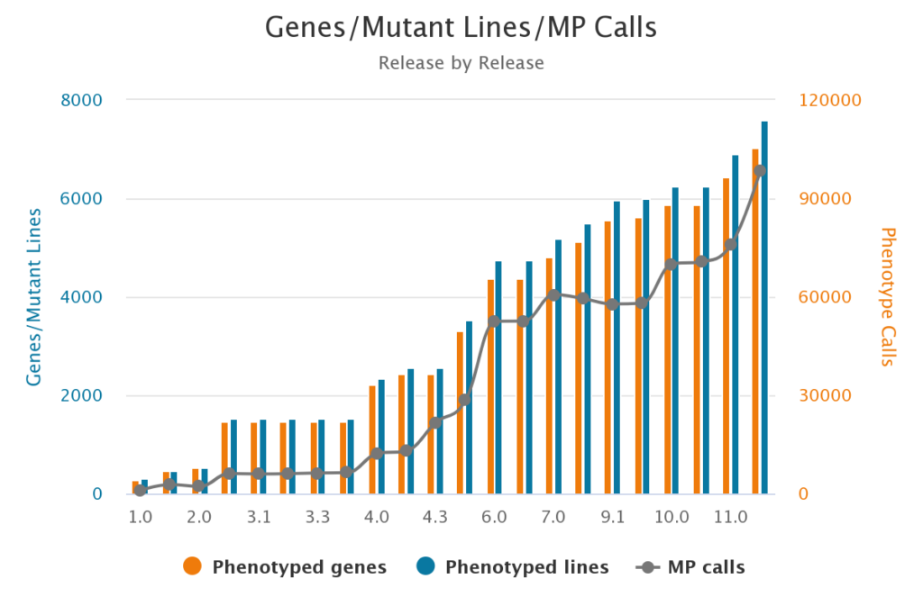 Data release 12 has been published on the IMPC website. The number of phenotyped mutant lines has reached 7,606 bringing the total number of phenotyped genes to 7,022.